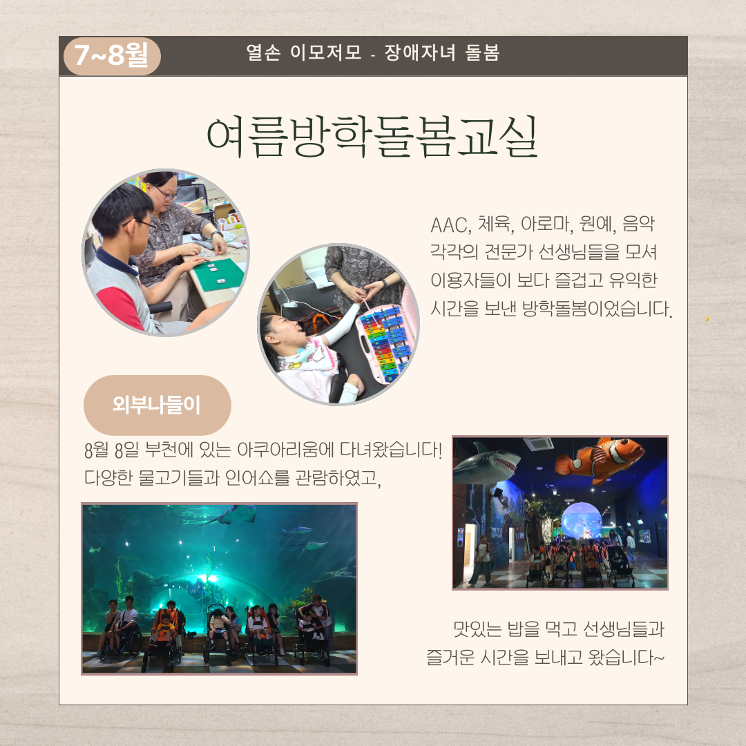 장애자녀와 가족의 자유로운 삶과 편안함 쉼을바라는 마음을 모아