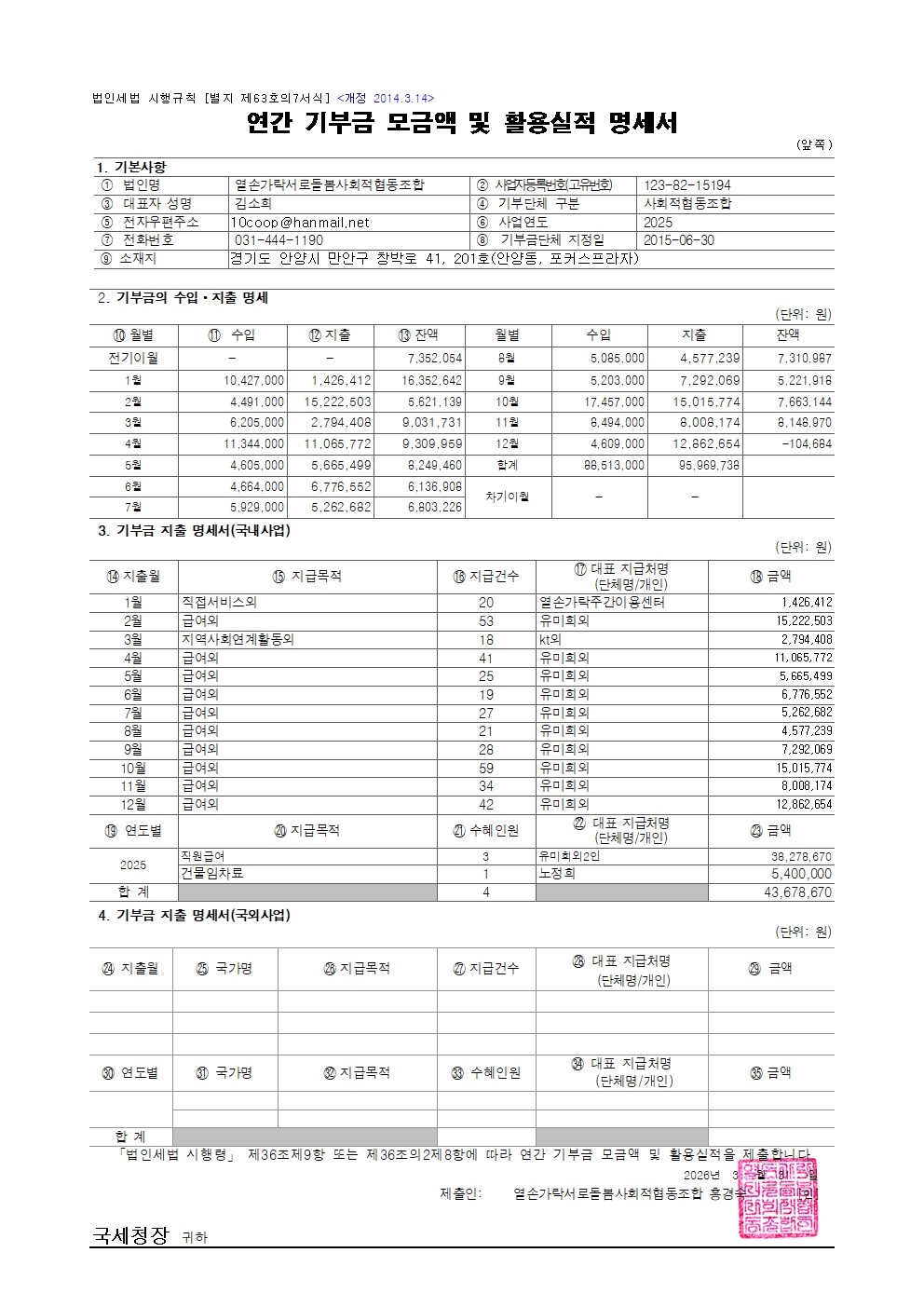 [2025년 기부금모금액 및 활용실적명세서]